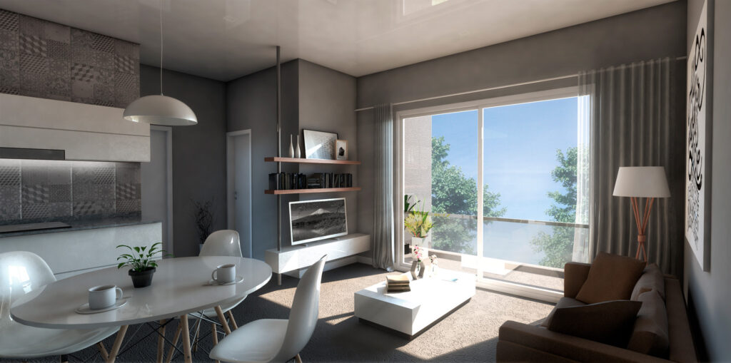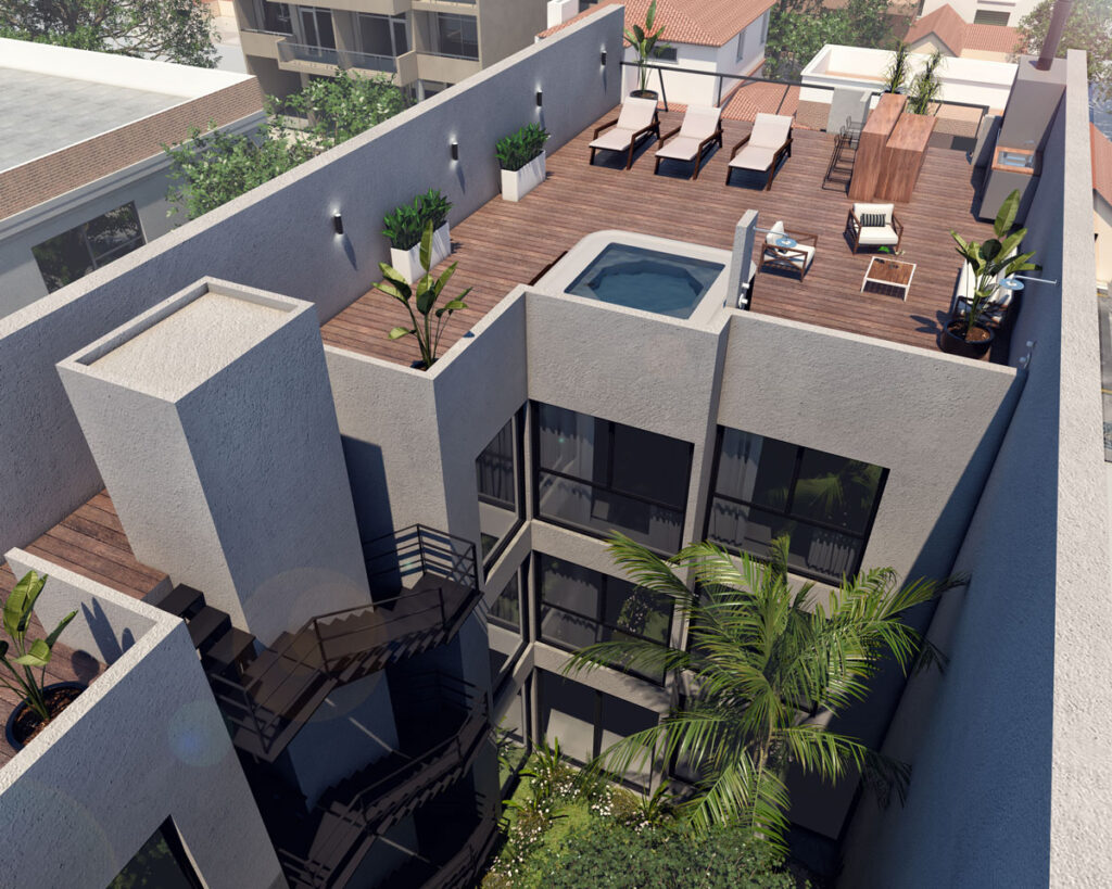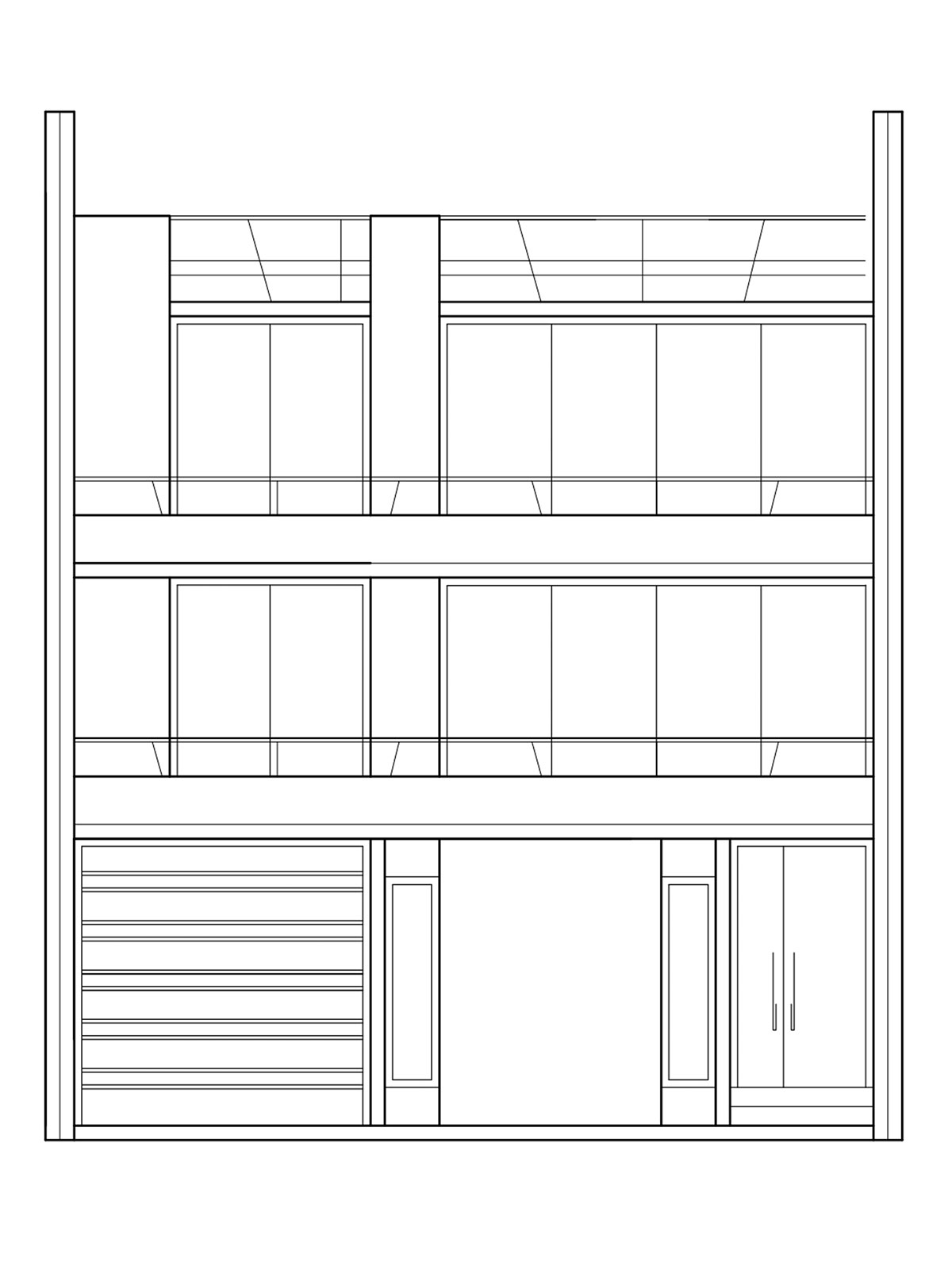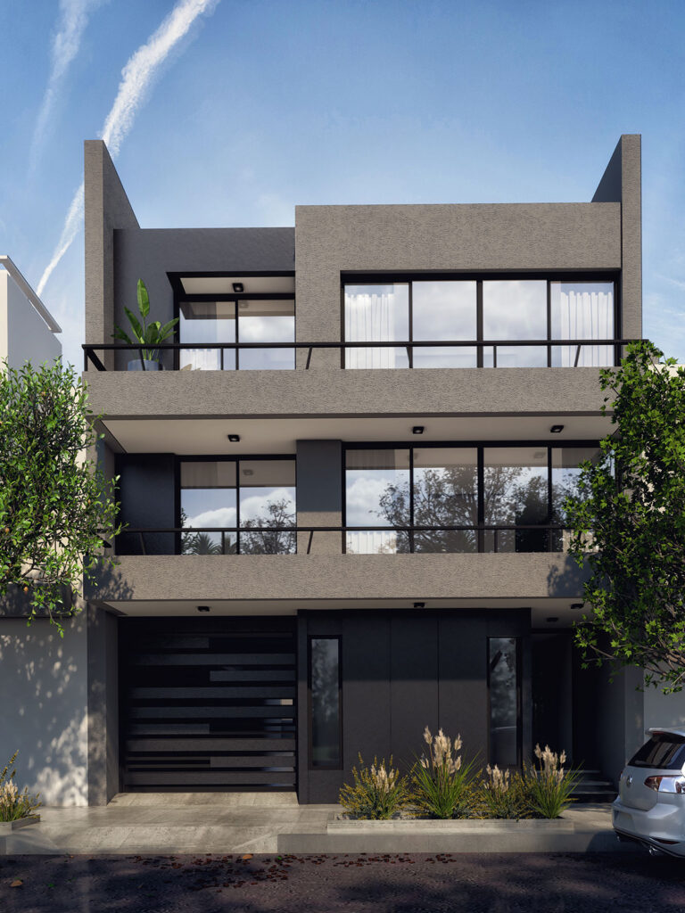 Edificio de viviendas de 1 y 2 ambientes. Los niveles se comunican a través núcleo de circulación que cuenta con un ascensor en el interior y una escalera exterior. Se dividen en 2 bloques divididos por un patio central.